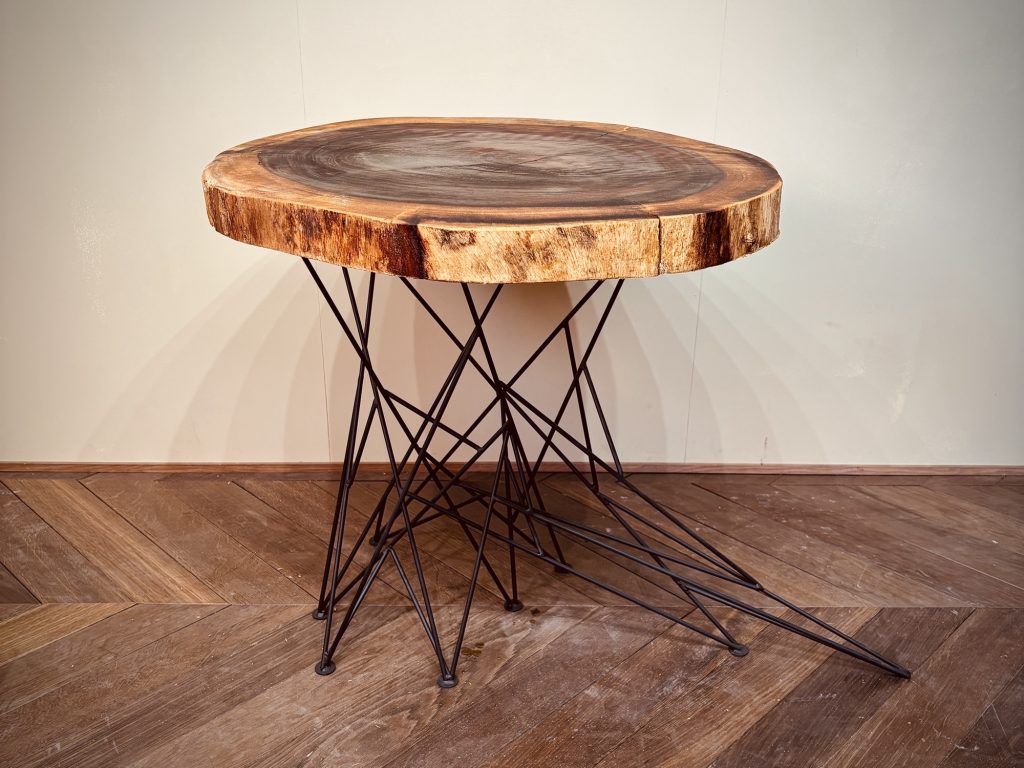 硬すぎず、適度な強度があるため、加工しやすいのもポイント。特に輪切り素材を活かしたサイドテーブル作りには最適な木材です。