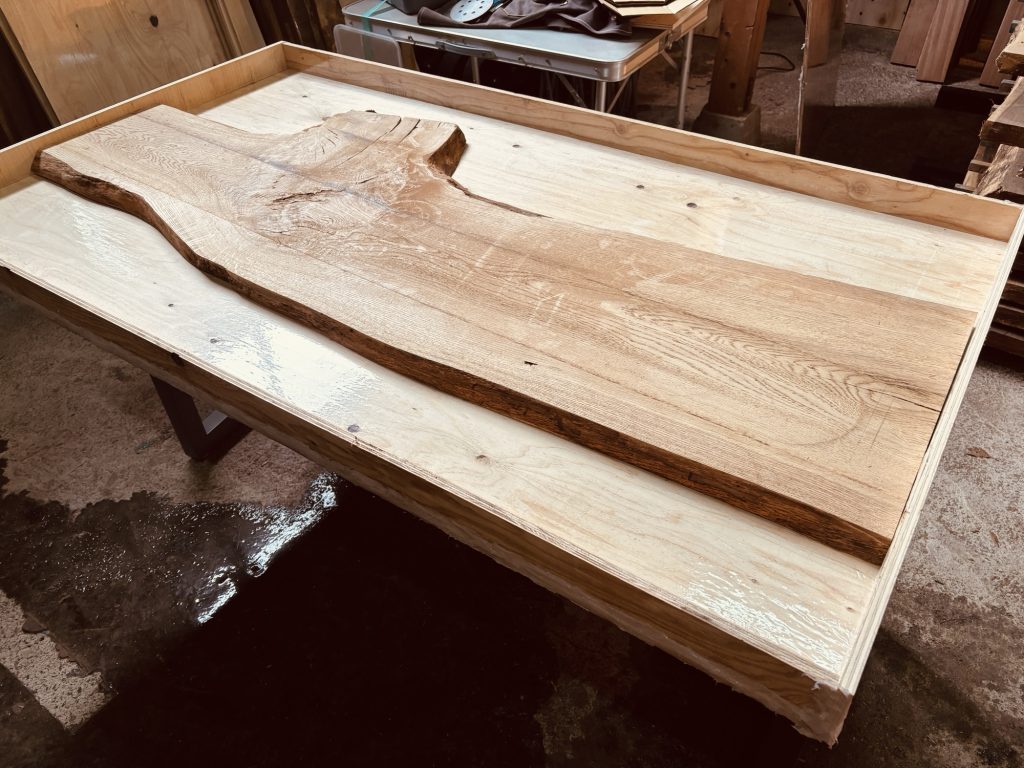 木の選定や型枠作りといった、テーブルとしての形すら見えない工程。でも、ここがレジンテーブル制作の一番大切な部分です。
