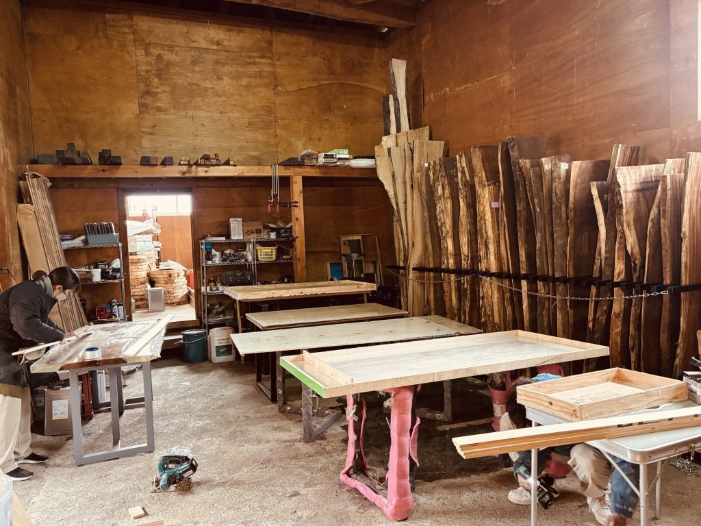 「これからレジンテーブルを作ろう!」というときに、ずらりと並んだ美しい木材を眺めながらデザインを考える時間は、まさにワクワクの瞬間。工房の雰囲気もぐっと引き締まり、まるで木材のギャラリーのような空間に生まれ変わりました。