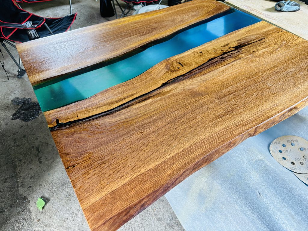 海を感じるレジンテーブル——国産ナラ材の美しさと自然の温もりを楽しむ逸品