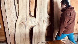 今回のレジンテーブルは奈良県産ナラ材をセンターに配置したダイニングテーブルと、同じく奈良県産ナラ材を使用したカフェテーブルの2種類。