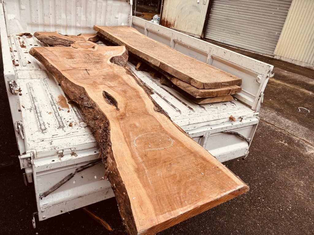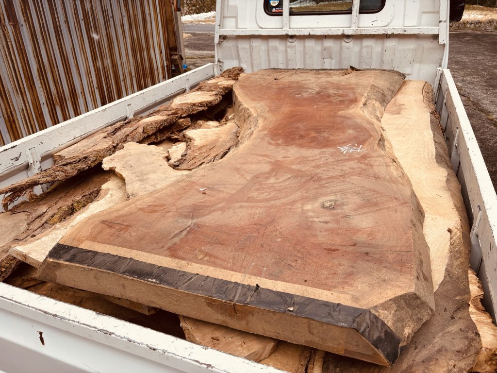 それぞれの木が持つ魅力や活かし方を考えるだけで、創作意欲が掻き立てられます。とはいえひとりでトラックから降ろすだけでも大変だったので写真の撮影もままならず詳しくご紹介するのはまた改めるとして、少しご紹介させて頂きます。