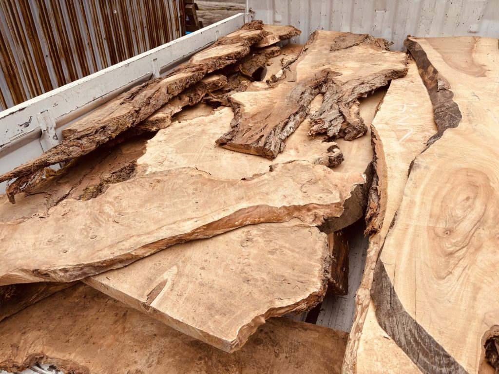 桜、欅、栗、桧、楠、朴、ポプラの瘤杢、そして 神代ニレ まで…まさに豪華なラインナップ。この仕入れは、ただの商取引ではなく、「木と人をつなぐ」というエコロキアの理念にぴったりの出会いでした。