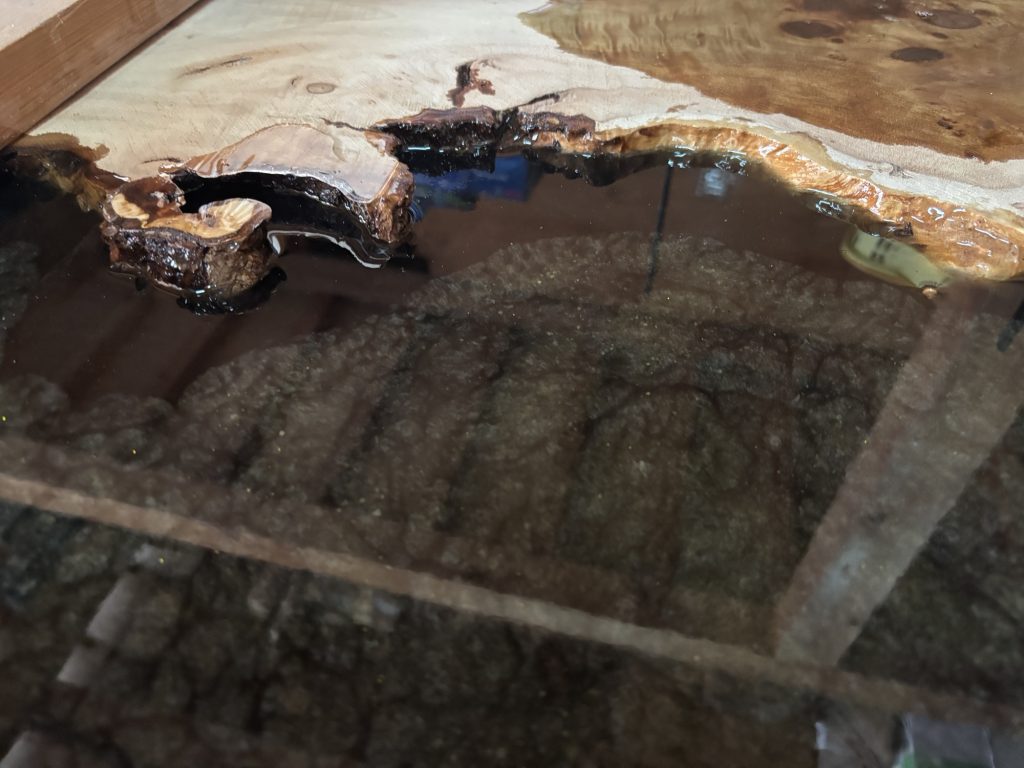 昨日は、以前ポプラ材をお選びいただいたお客様が、いよいよレジンテーブル制作体験ワークショップの第2回、「レジン注入」の工程に進まれました。
