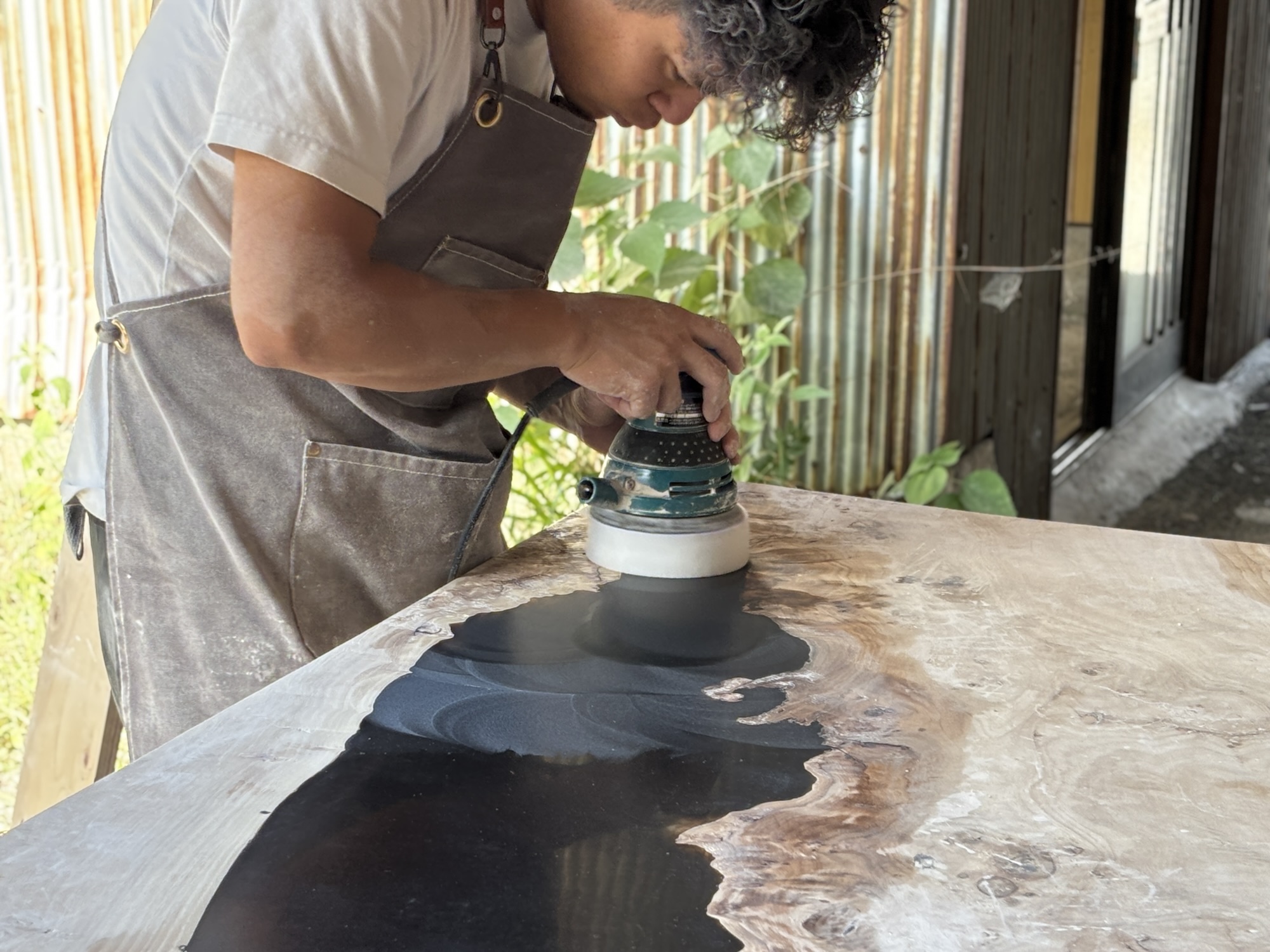 ワークショップは単なる体験に留まりません。使用する木材の選び方、レジンの扱い方、気泡対策、研磨・仕上げの工程など、事業化を見据えた方にも実践的なノウハウを提供しています。実際に参加された家具職人の方からは「新しい提案の幅が広がった」「地元のお客様にオーダーメイドで提供できる武器になる」といった声をいただいています。