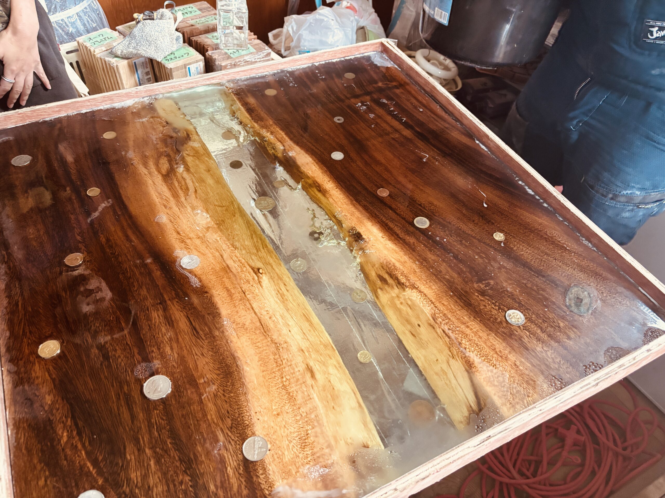 堺市でリユース・リサイクル業を営むお客様が、エコロキアのレジンテーブル制作体験ワークショップに参加されました。