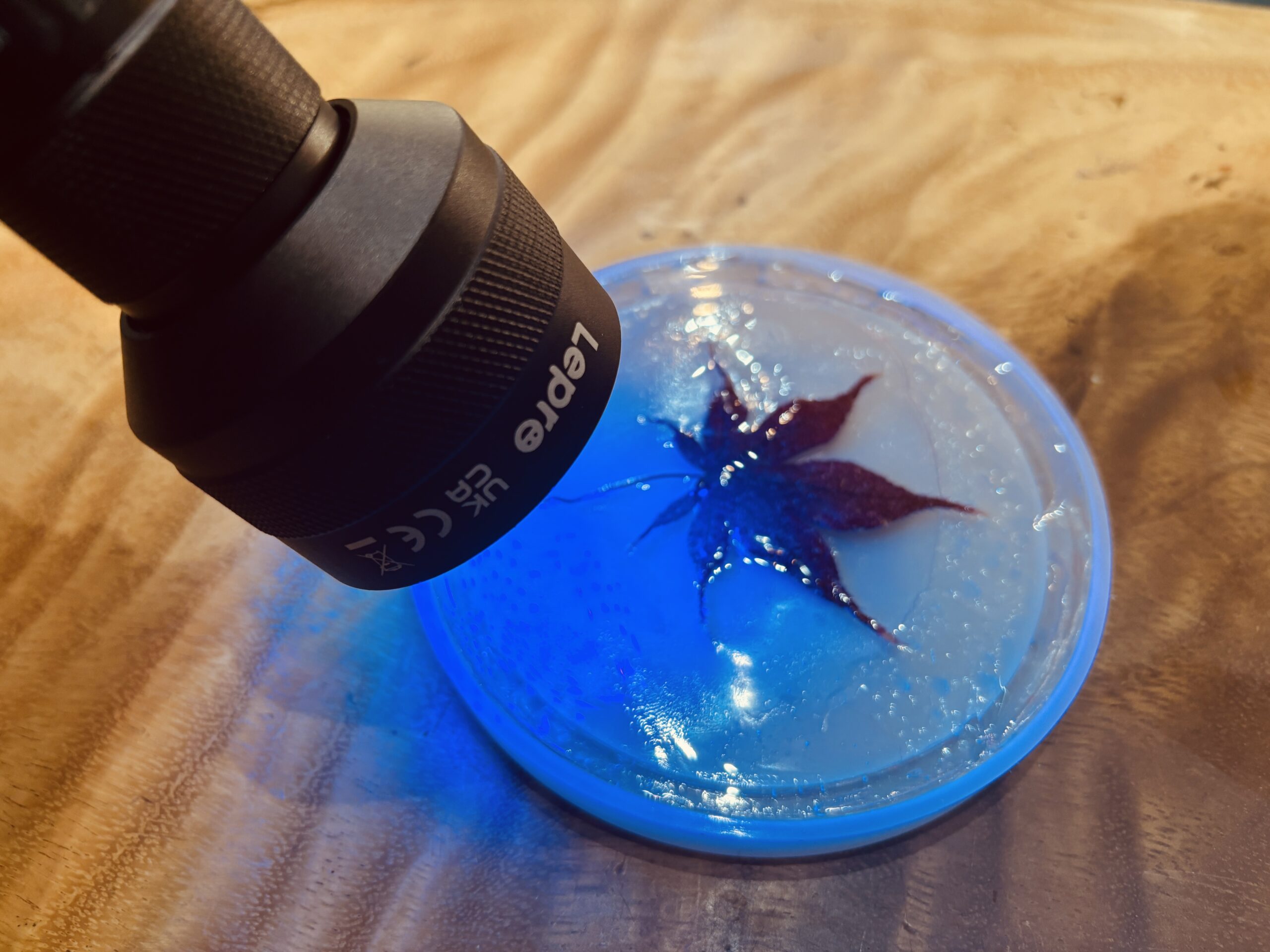 今日のうちにすべての条件を試し、ベストな方法を確立できるとは限りません。実際に硬化速度や透明度、仕上がりの均一さなどを確認しながらも、「もっと良い方法があるのでは?」という思いが次々と湧いてきます。本来なら何日もかけて試したいところを、限られた時間の中でベストを尽くすしかありません。
