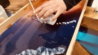波を描いて終わりではない、レジンテーブル制作体験
