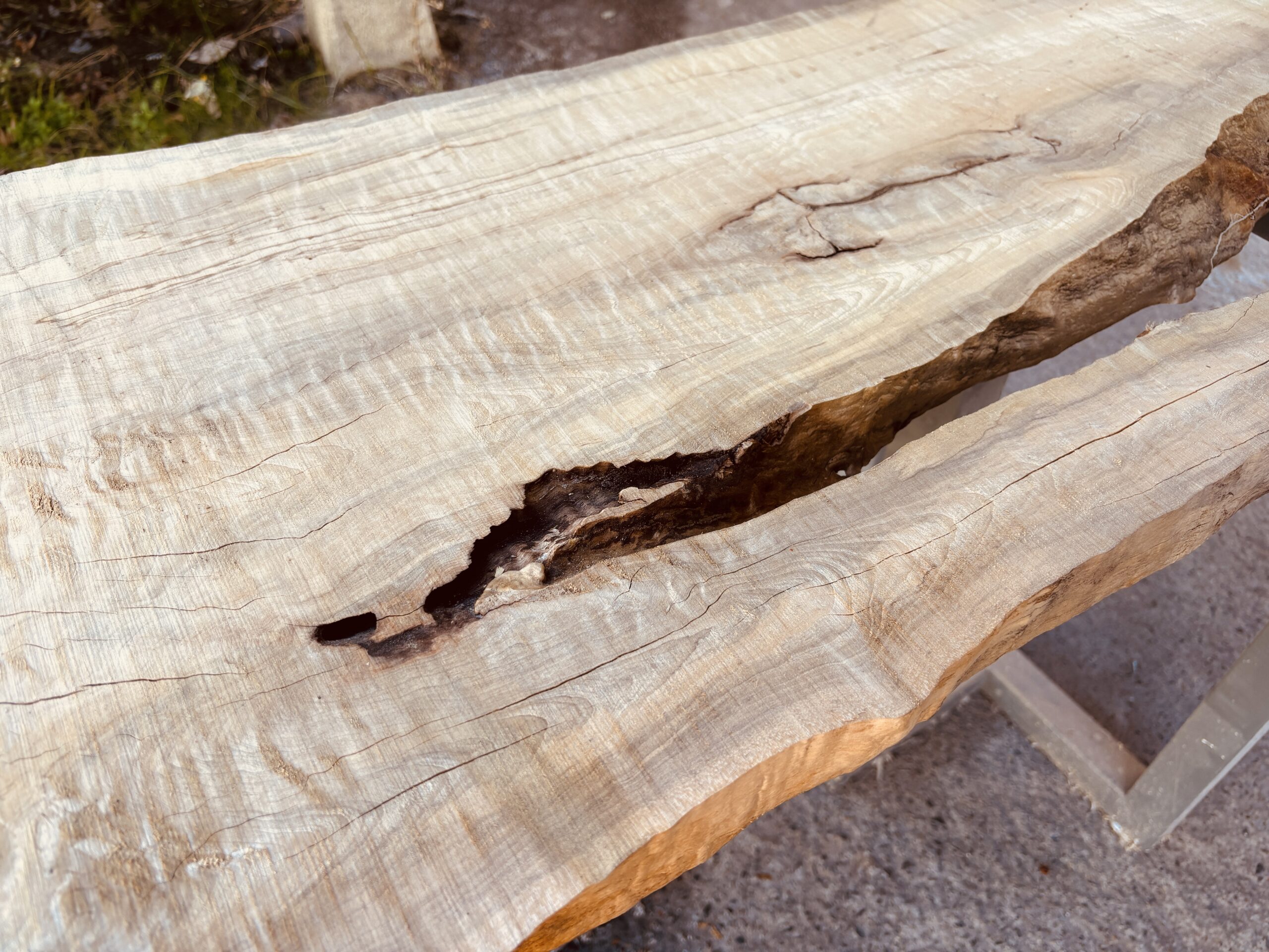 割れの強さとそのすぐ横に現れる柔らかな杢。