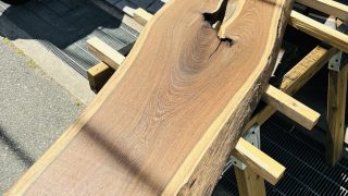 今回使ったトチノキの一枚板は、輪郭や厚みのばらつき、木目の流れにすでに強い個性がありました。加工をしなくても成立しそうだと感じる一方で、どこまで手を加えるべきかを慎重に考える必要がある素材でもありました。