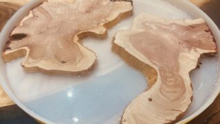 硬化前のレジンは流動性が高く、木の状態がそのまま表れます。