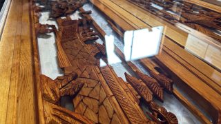 モンキーポッドは比較的安定性の高い広葉樹で、適切に乾燥管理された材を使用すれば反りや割れのリスクは抑えられます。またレジン部分も厚みや層構造を計算して制作することで、実用に十分耐える強度を確保しています。応接室のような通常使用環境であれば、日常的な打ち合わせや来客対応に問題なく使用可能です。素材理解と制作工程が耐久性を左右します。