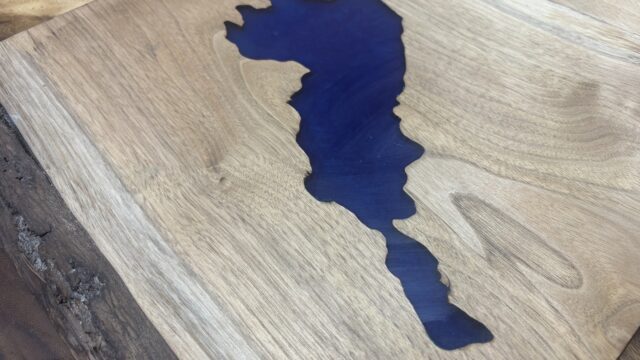 幅1100mm、長さ2400mm、厚さ60mmの特大サイズで製作したカンファーウッド(クスノキ)のレジンテーブルを愛知県に納品しました。大判サイズでも美しく仕上げるための素材選びやレジンの考え方、エコロキアの対応力について解説します。