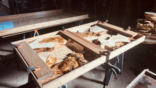 ポプラはその明るい色合いと独特の木目が、レジンとの組み合わせで魅力的なテーブルを生み出します。特に、ポプラの瘤(こぶ)から生まれる「バール杢」は、美しい模様として評価されています。また、ポプラは比較的軽量で柔らかく、加工がしやすいため、複雑なデザインや細部の仕上げも容易に行えます。さらに、成長が早く供給が安定しているため、コストパフォーマンスにも優れています。これらの特性から、ポプラはレジンテーブルの素材として非常に適しています。