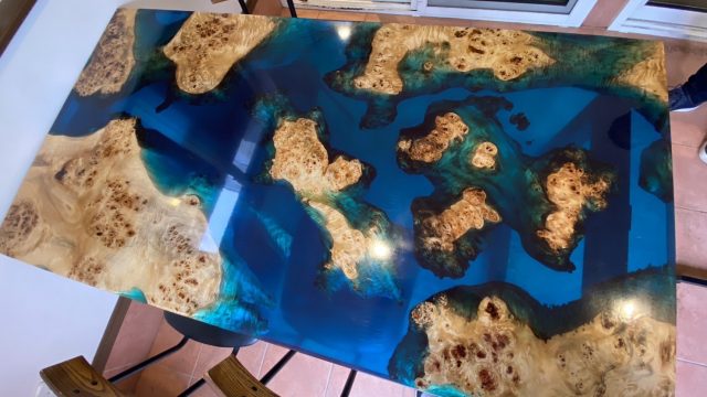 レジンテーブル 【制作開始】ポプラ×アクアブルーのレジンテーブル